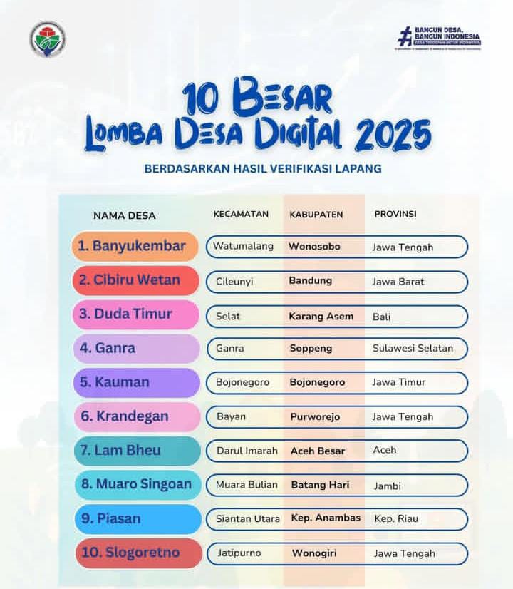 “Patut kita syukuri bersama, gampong Lam Bheu telah berhasil melalui dua babak eliminasi, pertama berhasil masuk 15 besar, setelah lakukan verifikasi faktual bulan lalu oleh Tim Kemendes RI, kini kita berhasil masuk 10 nominasi lomba desa digutal tahun 2025 ini,” ujarnya.